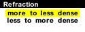 The angle and wavelength at which the light enters a substance and the density of that substance determine how much the light is refracted. The refraction of light by atmospheric particles can result in a number of beautiful optical effects like halos, which are produced when sunlight (or moonlight) is refracted by the pencil-shaped ice crystals of cirrostratus clouds. When light passes from a more dense to a less dense substance, (for example passing from water into air), the light is refracted (or bent) away from the normal.