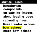 Below is a smaller scale bow echo. Short thunderstorm lines and multicell cluster storms can both evolve into bow echoes. Research indicates that these smaller scale bow echoes can be more dangerous than the large scale variety, with rotating comma head structures more likely to develop.