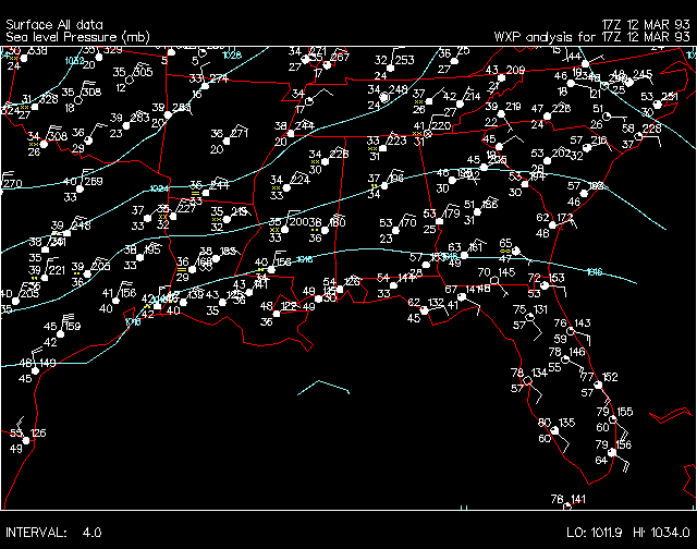 contours) for the southeastern United States. Time period