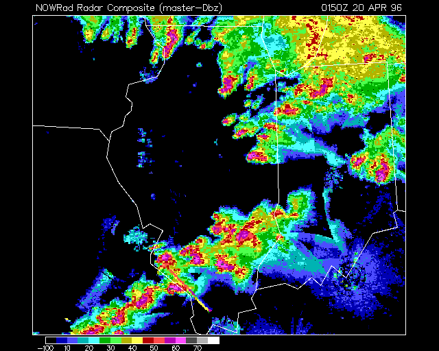 The NOWRad Radar composite image combines radar reflectivities for ILX-Lincoln, IND-Indianapolis, LSX-St. Louis, and LOT-Chicago into a single image. Images are accessible through the links below and are given in Universal Time Coordinates (UTC). Movies: QuickTime (2.3 MB) | MPEG (4.4 MB)