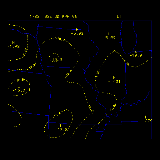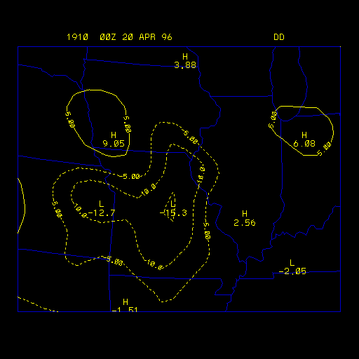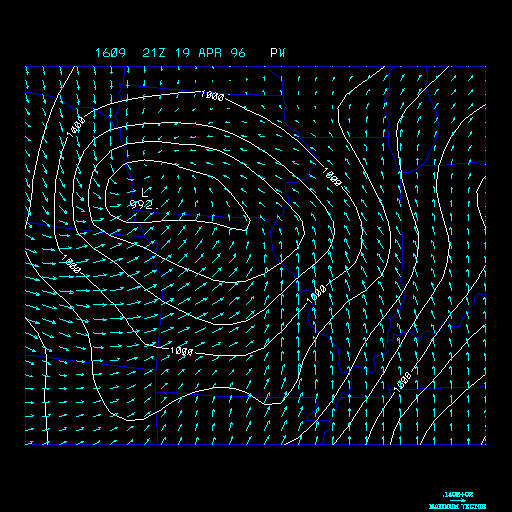 The chart below provides access to an array of surface analysis plots for the time period of 12Z April 19 to 03Z April 20, 1996.
