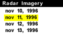 On Monday morning November 11, 1996, strong lake effect snowbands developed on the NE Ohio lakeshore. These bands migrated southward during the evening of the 10th from a position near Erie, PA to the indicated position found on this WSR 88-D NEXRAD radar image from the National Weather Service Forecast Office (NWSFO) and Doppler radar site in Cleveland, Ohio. Notice that the snowfall is quite variable in Greater Cleveland with widespread areas of no reflectivity and isolated instances of radar reflectivity factor approaching 35 dBZ, about as intense as snowfall is observed on radar.