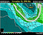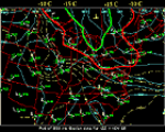 The following analyses are derived from upper air observations across the US and North America. These upper air conditions are a recorded using radiosonde or rawinsonde balloon ascents that normally occur twice daily. Observations from commercial aircraft instruments, as well as satellite vertical "sounding" data augment the balloon observations which composes the standard upper air observational network. This is the sole source of data that might give a three-dimensional look at the atmosphere. However, the upper air data is sparser and reported less frequently than surface data, thus it is not possible to analyze upper air weather in the same detail as we look at surface weather. This is a decided disadvantage when looking at lake effect storms, since they often occur at a scale which is smaller than that of the upper air observational network.