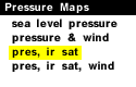 This panel depicts sea-level pressure across the United States. This chart is useful for finding regions of high and low pressure systems. The solid white contours represent pressure contours (isobars) in millibars. The isobars have an interval of 4 millibars. The wind speed is directly related to the distance between the isobars. The closer they are together, the stronger the pressure gradient, and the stronger the wind. In the background, infrared satellite data shows the cloud patterns over North America. The brightness of the cloud images is inversely proportional to the temperature of cloud tops, therefore the deep clouds with high (and thus cold) cloud tops typically indicating areas of intense rain and/or hail associated with deep convection appear brightest on this image. However high cirrus clouds will often also appear very bright, but these clouds do not produce precipitation. Low and high pressure systems can also be located from the map above. Low pressure systems are located in the regions of the lowest pressure, while high pressure systems are located in the regions of highest pressure.