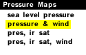 This panel depicts sea-level pressure and surface wind vectors. This chart is useful for finding fronts and high and low pressure systems. The green arrows represent wind vectors. Wind vectors show wind direction and wind speed. The arrows point in the direction the wind is blowing and the longer the wind vector the stronger the wind. From the map above you can easily find warm, cold, occluded, and stationary fronts. Fronts are usually located in areas where winds come together and change direction. Low and high pressure systems can also be located from the map above. Winds around a low pressure system move counter-clockwise (cyclonic) and in towards the center. While winds in high pressure move clockwise (anticylonic) and out away from the center. The solid white contours represent pressure contours (isobars) in millibars. The isobars have an interval of 4 millibars. The wind speed is directly related to the distance between the isobars, The closer they are together, the stronger the pressure gradient, and the stronger the wind.