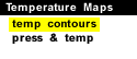 This surface meteorological chart shows the temperature pattern (in degrees Fahrenheit) over the continental United Sates and is updated every hour. Surface temperature reported at each station are contoured every five degrees Fahrenheit. Areas of warm and hot temperatures are depicted by orange and red colors and cold temperatures (below freezing) are shaded blue and purple. Areas of sharp temperature gradients (several contours close to each other) tend to be associated with the position of surface fronts. Fronts separate airmasses of different temperature and moisture (and therefore density) characteristics. In the example above on the left, there is a large change in temperature from western Oklahoma to central Texas. This suggests that a front is somewhere in the area. You can check the current map (above right) to see is there are areas that also appear to be affected by fronts.