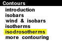 The black numbers are station reports of surface dew point temperature in degrees Fahrenheit, which is the unit for dew point temperature in the U.S.. Most other nations of the world use Celsius The isodrosotherms were generated from the observed values of dew point temperature, and have been plotted at intervals of 5 degrees Fahrenheit. The small green numbers are contour labels, which identify the value of an isodrosotherm (55, 65 degrees Fahrenheit). For example, high dew point values of greater than 70 have been reported in Iowa, Illinois and southern Michigan and are therefore located south of the 70 degree contour. In the image below, this surface dew point temperature information has been incorporated into a more complex surface map generated for the same time.