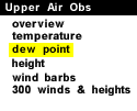 The value highlighted in yellow located in the lower left corner (in the diagram above) is the dew point temperature in degrees Celsius. In this example, the reported dew point temperature is 58 degrees. Dew Point Temperature is defined as the temperature at which air would have to cool (at constant pressure and constant water vapor content) in order to reach saturation. Dew points provide insight into the amount of moisture in the air. The higher the dew point temperature, the higher the moisture content for air at a given temperature. When the dew point temperature and air temperature are equal, the air is said to be saturated. Dew point temperature is NEVER GREATER than the air temperature. Therefore, if the air cools, moisture must be removed from the air and this is accomplished through condensation. This process results in the formation of tiny water droplets that can lead to the development of fog, frost, clouds, or even precipitation. Other upper air observation maps may actually report dew point depression instead of dew point temperature. Dew point depression is the difference in degrees Celsius between the temperature and the dew point. In the example above the dew point depression would be 20 degrees.