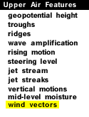 The wind vectors (red arrows) are much smaller in the blue regions, where the winds are relatively weak, and largest in the red, which is the region of strongest winds. The ribbon of strongest winds (green, yellow and red colors) is called the jet stream with a jet maximum, or jet streak located along the east coast. Notice how the wind vectors are aligned generally parallel to the geopotential height contours. Once high enough above the earth, the effects of surface friction on wind direction decrease dramatically and consequently, winds flow roughly parallel to the height contours.