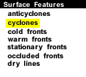 A low is represented on a weather map by a red "L". As a cyclone approaches, the likelihood of clouds and precipitation increases.