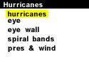 Hurricanes are Earth's strongest tropical cyclones. A distinctive feature seen on many hurricanes and are unique to them is the dark spot found in the middle of the hurricane. This is called the eye. Surrounding the eye is the region of most intense winds and rainfall called the eye wall. Large bands of clouds and precipitation spiral from the eye wall and are thusly called spiral rain bands.