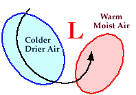 Southerly winds east of the low transport warm and moist air northward and this moisture often contributes to the development of precipitation. A warm front marks the leading edge of this air mass. Behind the low, northerly winds transport colder and drier air southward, with a cold front marking the leading edge of this air mass.