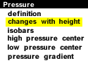 ![]() This means is that atmospheric pressure decreases with increasing height. Since most of the atmosphere's molecules are held close to the earth's surface by the force of gravity, air pressure decreases rapidly at first, then more slowly at higher levels.