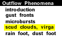 Scud clouds are low, detached clouds caught in the outflow beneath the thunderstorm. As cold air first reaches the ground, it lifts relatively warm air, resulting in saturation through ascent. Thus, the presence of sub-thunderstorm base scud clouds almost always indicates the presence of outflow.