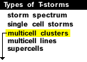 The inset shows what the low-level PPI radar presentation might look like. This storm appears to be unicellular but the several distinct echo tops tell us otherwise. Note that the greatest risk of severe weather at this time extends from beneath the heavy precipitation areas of cell 3 (hail and downbursts) into the area of the leading gust front (downbursts and, on rare occasions, weak gust front tornadoes or gustnadoes).