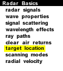 Distance is determined by measuring the time it takes for the pulse to make a round trip from the radar to the target and back using the relation distance = (time) * (velocity). The velocity is the speed of light, the speed at which the pulse travels (c). Since the pulse has to travel to the target and back, the total distance is 2D. If t is the time it takes, then 2D = ct or D = ct/2. Using the calculated distance, azimuth angle and elevation angle, the exact location of the target can be determined.