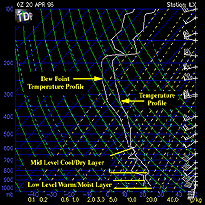 Warm temperatures and increasing dew points were present at low levels.