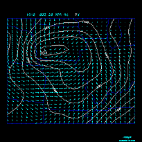 The chart below provides access to an array of surface analysis plots for the time period of 12Z April 19 to 03Z April 20, 1996.