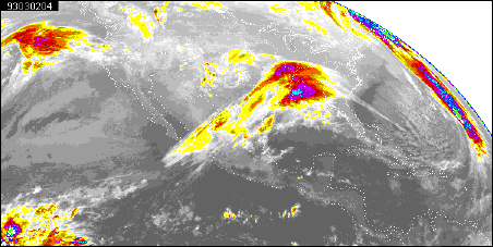 MOVIE (QuickTime 1.3MB): Infrared Satellite Loop Here is a movie loop of color enhanced infrared images spanning 18 hours. The center of the cyclone was initially located over the southcentral portions of the United States. As the cyclone evolved over time, notice the counterclockwise rotation of clouds around the cyclone center.