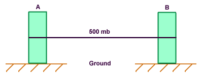 The height of a given pressure surface above the ground varies with temperature. As an example, consider two identical columns of air (A and B). Since they are identical, the 500 mb surface is found at the same height in each column.
